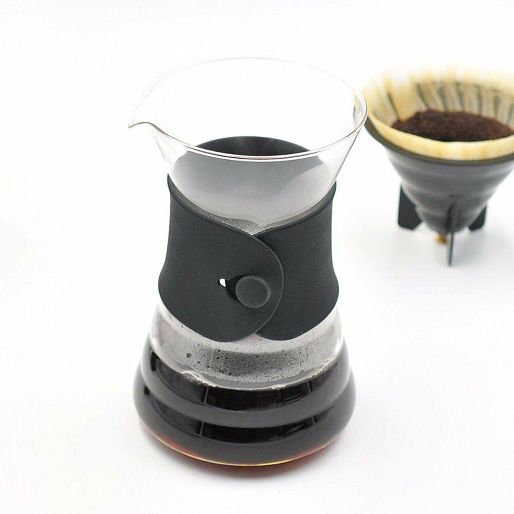 Hario V60 Drip Decnater v sebe kombinuje benefity plastového dripperu a skleneného dekantéru. S jedným zariadením tak kávu pripravíš a zároveň ju aj z neho môžeš servírovať! Od horúceho povrchu skla ťa ochráni elegantný gumený prstenec.